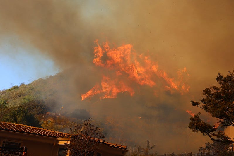 美國加州近來遭受歷史性的野火肆虐,過去一週(編按:原文發表日期為2025年1月13日)已造成至少24人死生,大火摧毀了超過12,000棟住宅,而這場災難仍尚未結束。根據美國國家氣象局(National Weather Service),隨著未來幾天風力增強,消防人員將面臨「極度危險的情況」,氣象局更於1月13日上午發出了罕見的「最高級別」警告。