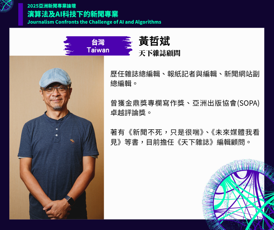 2025年亞洲新聞專業論壇將於7月5日、6日兩天,在台灣大學社會科學院梁國樹國際會議廳舉行,以「演算法及AI科技下的新聞專業」為主題,兩天規劃五大場次,從「編採流程與內容生產」、「新聞傳播與媒體營運」以及「讀者信任與興趣的流失」三大面向,全面檢視社群平台演算法對新聞業的衝擊,並探討生成式AI所帶來的機會與挑戰、聚焦於新聞業面對當前困境的因應策略及可能解方。活動詳情:https://feja.org.tw/78918/